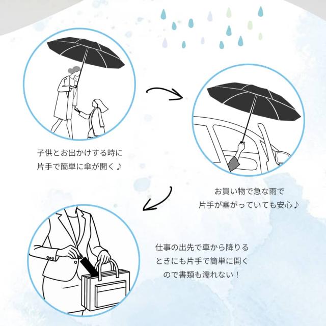 片手操作が可能なので、荷物が多い日や突然の雨でもストレスフリー。