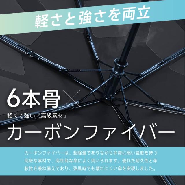 カーボンファイバー製6本骨で、軽さと耐久性を両立。毎日の持ち歩きに最適。