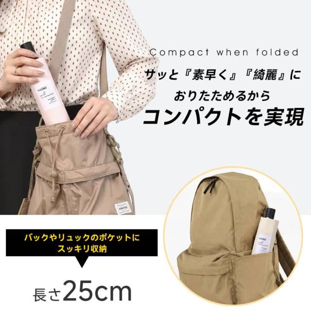 収納時は約25cmとコンパクトで、通勤・通学・旅行にも便利。