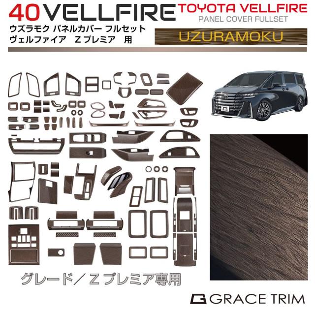 | 商品名 | 40系 アルファード ヴェルファイア ウズラモク(ウッド)インテリアパネル 【Zプレミア専用 フルセット 全40アイテム】 |