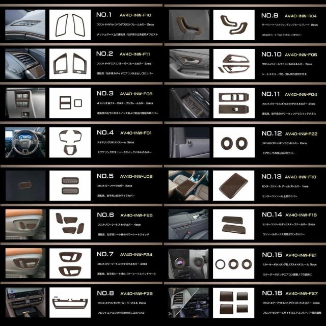 40系 アルファード ヴェルファイア ウズラモク(ウッド)インテリアパネル 【Zプレミア専用 フルセット 全40アイテム】 AV40-INW-FULL-ZPRM | インテリア パネル ガーニッシュ カバー パーツ カスタム 内装 室内 ウッド調 トヨタ 新型 アルヴェル