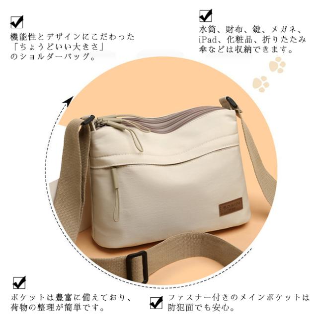 ショルダーバッグ レディース メンズ 斜めがけバッグ 肩掛け 鞄 軽量 多収納 ポケット ファスナー カジュアル 上品 大容量 通勤 通学 お出掛け おしゃれ 母の日