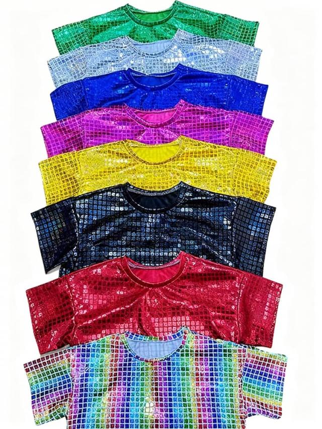 カットソー 親子お揃い 社交ダンス コンサート ステージ衣装 ストレッチ チーム衣装 キラキラ Tシャツ ダンス衣装・ステージ衣装に!スパンコール ヒップホップ 送料無料 ライブ コスプレ ダンス衣装・ステージ衣装に!スパンコール ヒップホップ ジュニア ダンス