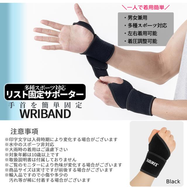 サポーター 手首 スポーツ 手首サポーター 薄手 40cm 固定 男女兼用 左右兼用 テーピング バンテージ マジックテープ リストバンド 巻く マジックテープ 簡単 装着 伸縮 右手 左手 汎用 運動 トレーニング ジム 部活 クラブ 作業 ブラック WRIBAND 送料無料