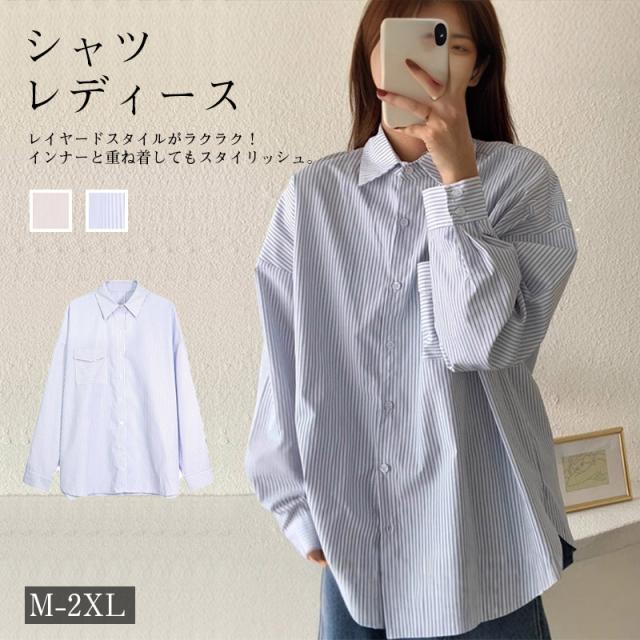 シャツ レディース 長袖 羽織り ブラウス おしゃれ 春夏 秋冬 韓国ファッション シンプル 体型カバー カジュアル ロングシャツ