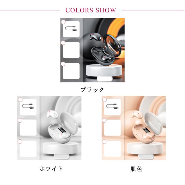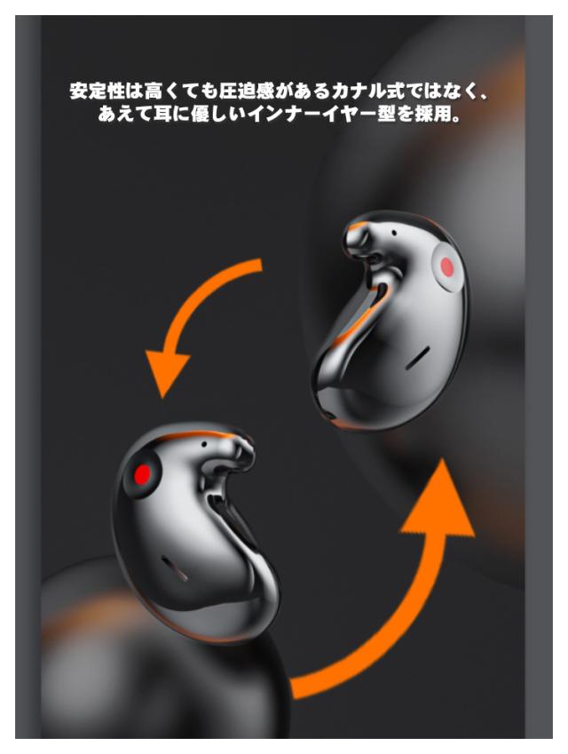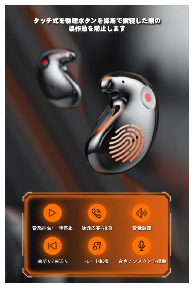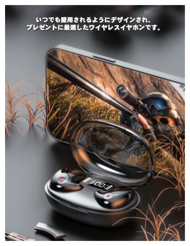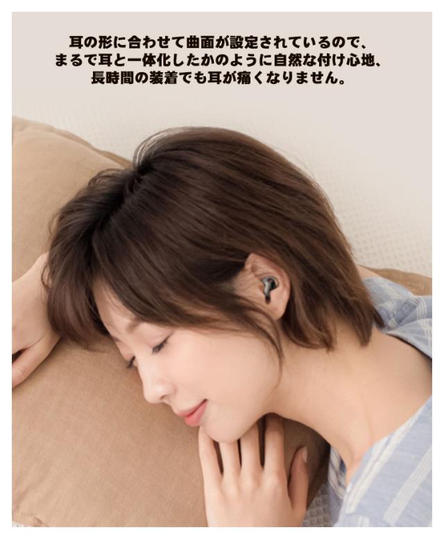 | Bluetooth5.3!寝ながら使える、超スリム! 最大24時間使用可能な長時間バッテリー搭載。 耳の形に合わせて曲面が設定されているので、まるで耳と一体化したかのように自然な付け心地、長時間の装着でも耳が痛くなりません。 耳の構造を利用し、耳の内側の3ヶ所の皮膚の反発力でしっかり固定、鼎のように安定し、運動中も耳から落ち難い設計です。 安定性は高くても圧迫感があるカナル式ではなく、あえて耳に優しいインナーイヤー型を採用。 タッチ式を物理ボタンを採用で横寝した際の誤作動を防止します。 いつでも愛用されるようにデザインされ、プレゼントに最適したワイヤレスイヤホンです。 | |