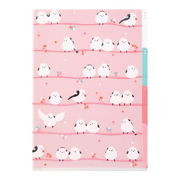 ミドリ 3ポケットクリアホルダー A4 シマエナガ柄 35482006