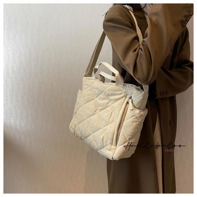 バッグ レディース 斜めがけ 軽量 ショルダーバッグ 大きめ 2way ナイロン キルティング トートバッグ トート ファスナー付き 軽い バッグ マザーズバッグ 斜めがけバッグ 軽い 大容量 旅行 収納力 シンプル プレゼント