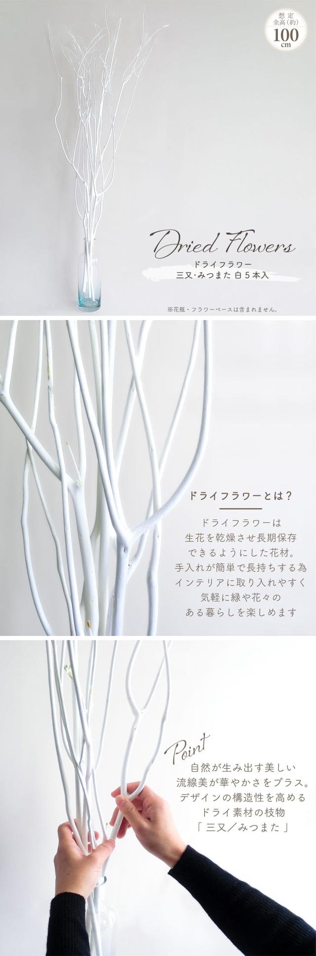 ドライフラワー 三又・みつまた 白 5本入り 全長約100cm 大地農園 ホワイト 枝物 枝もの ナチュラル 天然素材 自然素材 ドライ素材 インテリアグリーン 観葉植物 フラワーアレンジメント ディスプレイ お洒落 おしゃれ インテリア