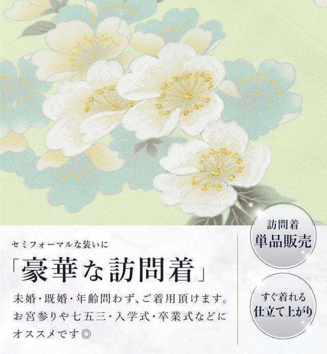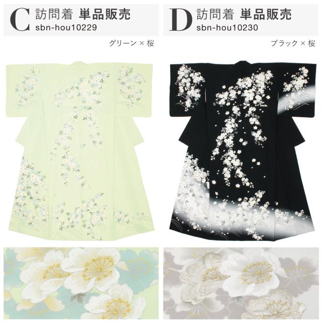 訪問着 単品 レディース 女性 和装 準礼装 お宮参り 入学式 卒業式 七五三 パーティー 洗える N-Silhouette ホワイト ピンク グリーン ブラック 白 黒 緑 くすみカラー 桜 レトロ モダン 販売 購入 Mサイズ 送料無料