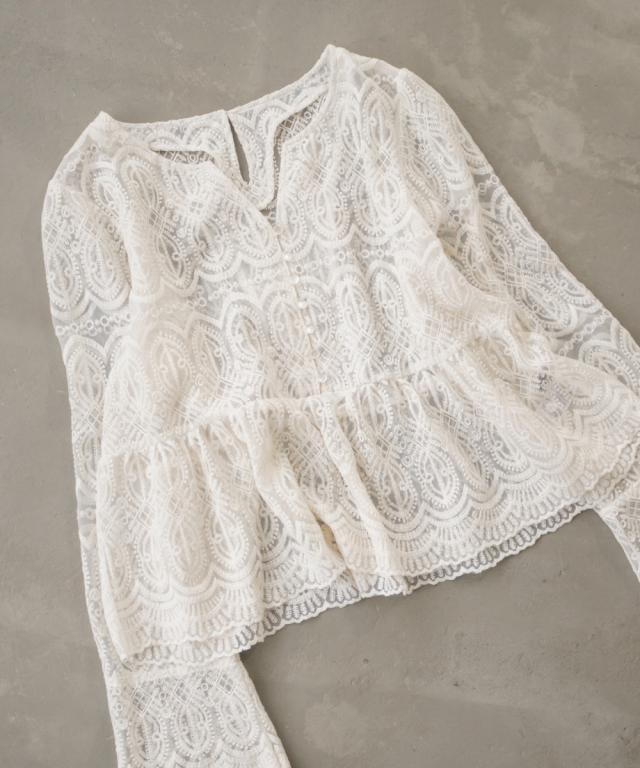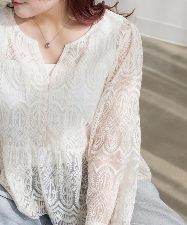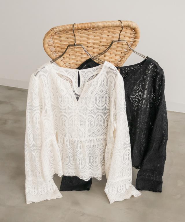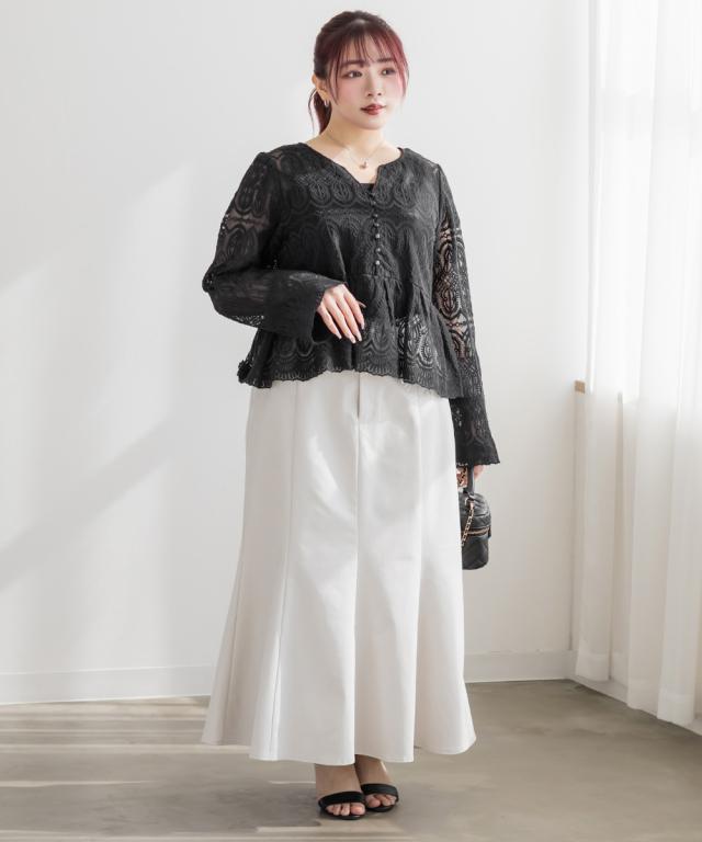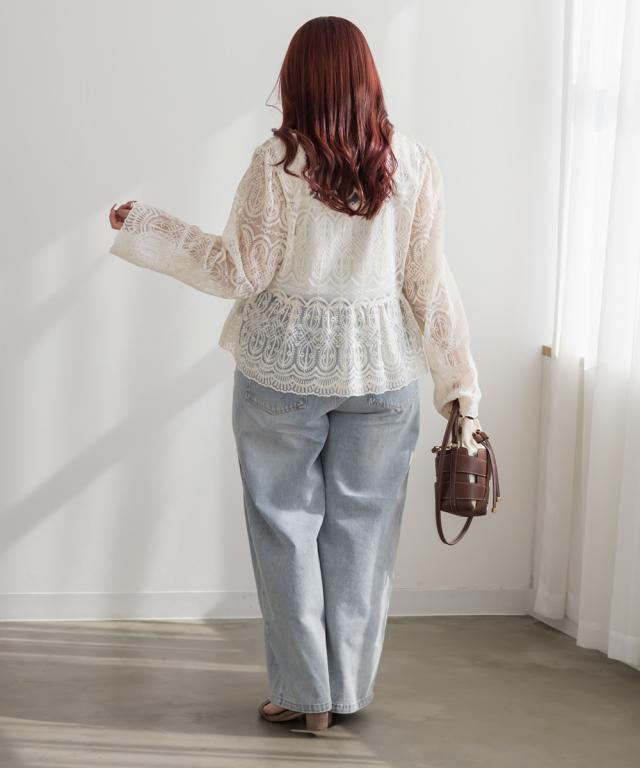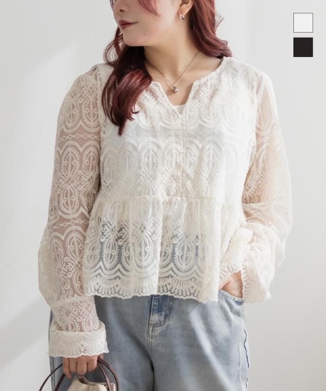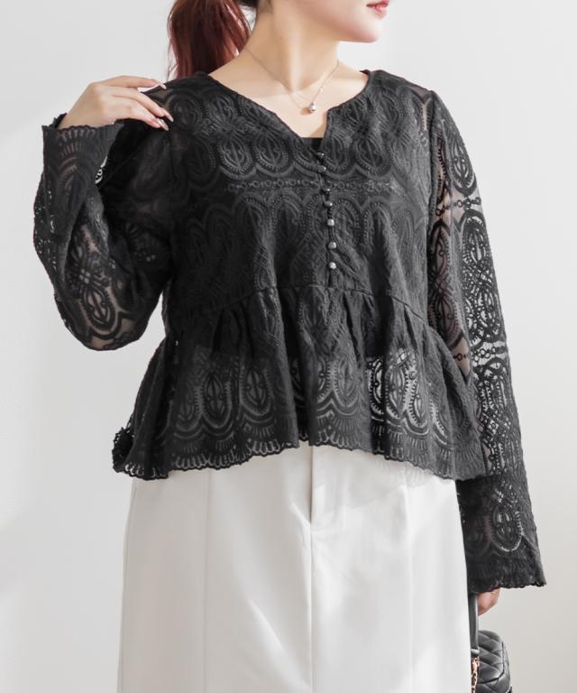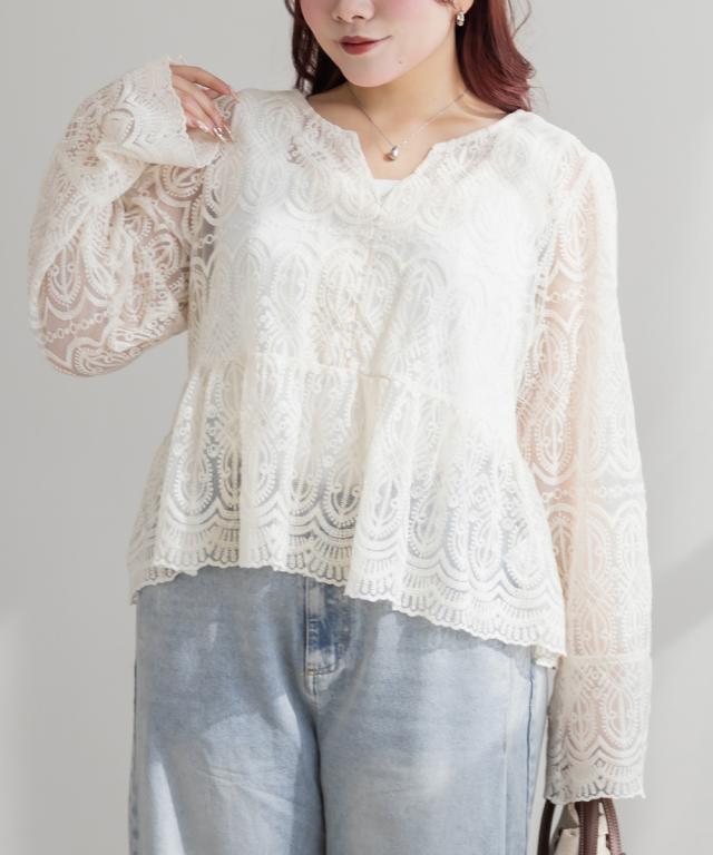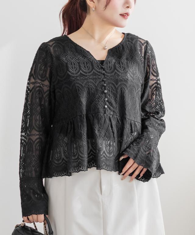大きいサイズ/レディース/LL/3L/4L/CLETTEオリジナル総レースペプラムブラウス