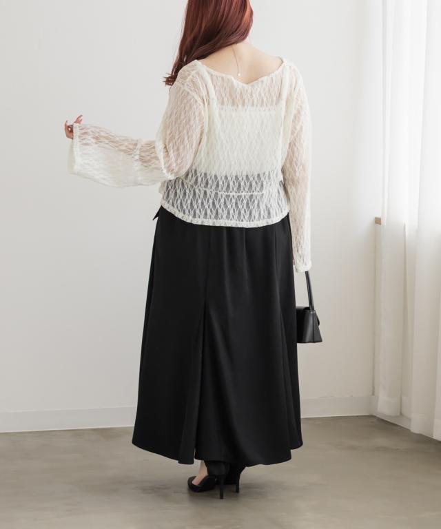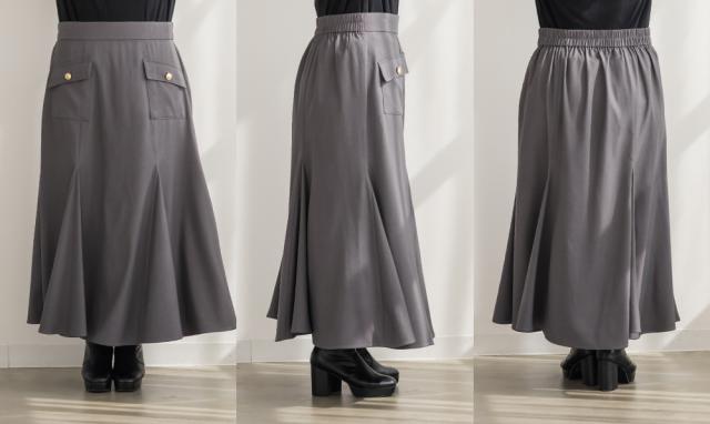 | 3Lサイズを着用しました。ウエストは程よくフィットし、全体的にちょうどいい着心地でした。腰まわりはすっきりとしつつ、裾にかけて広がるマーメイドシルエットが女性らしいラインをきれいに見せてくれます。フロントポケットデザインがさりげないアクセントになり、シンプルながらもこなれた印象に♪ 縦ラインを強調してくれるのでスタイルアップ効果も◎ ブラウス合わせできれいめに、カットソー合わせで少しカジュアルダウンもできる、オンオフ問わず活躍してくれそうなスカートだと思いました。 |