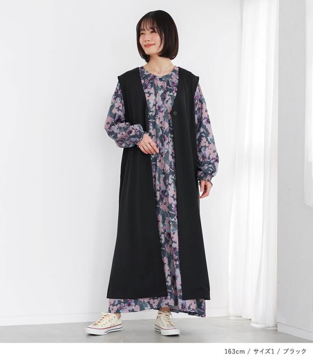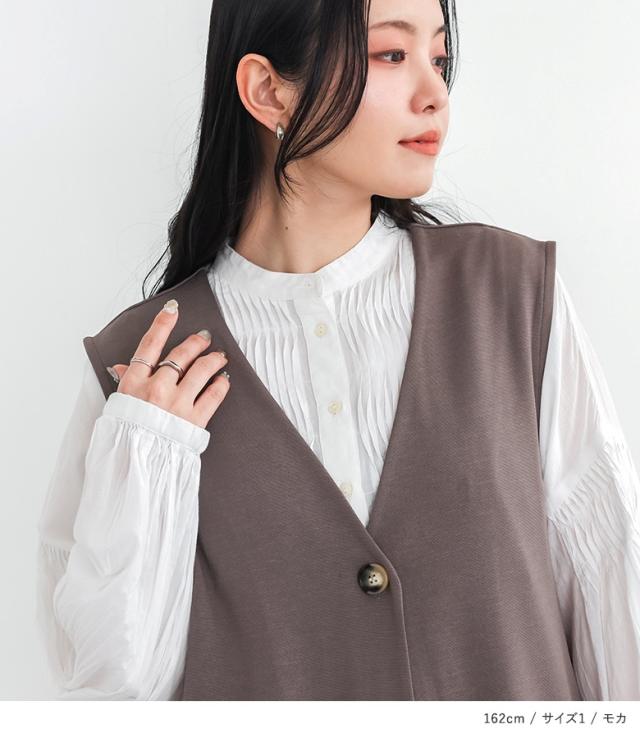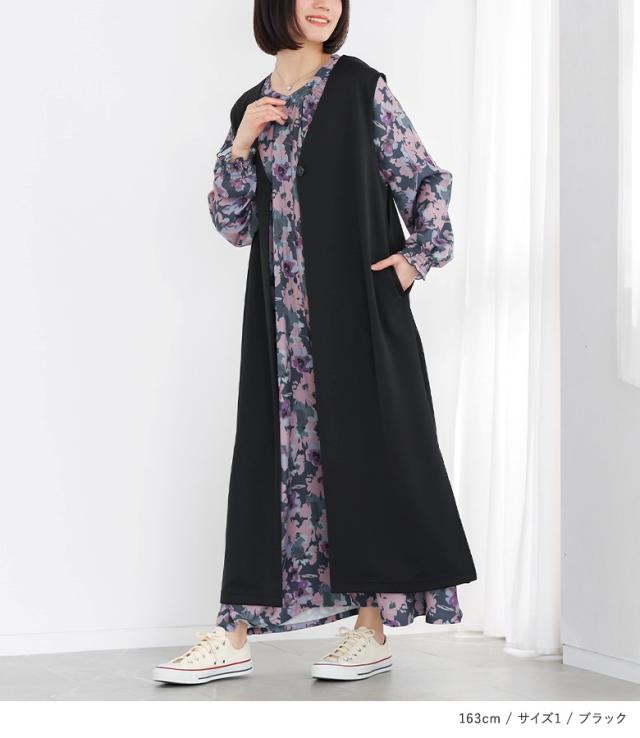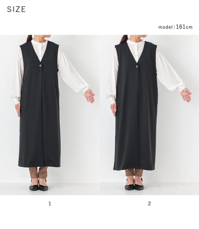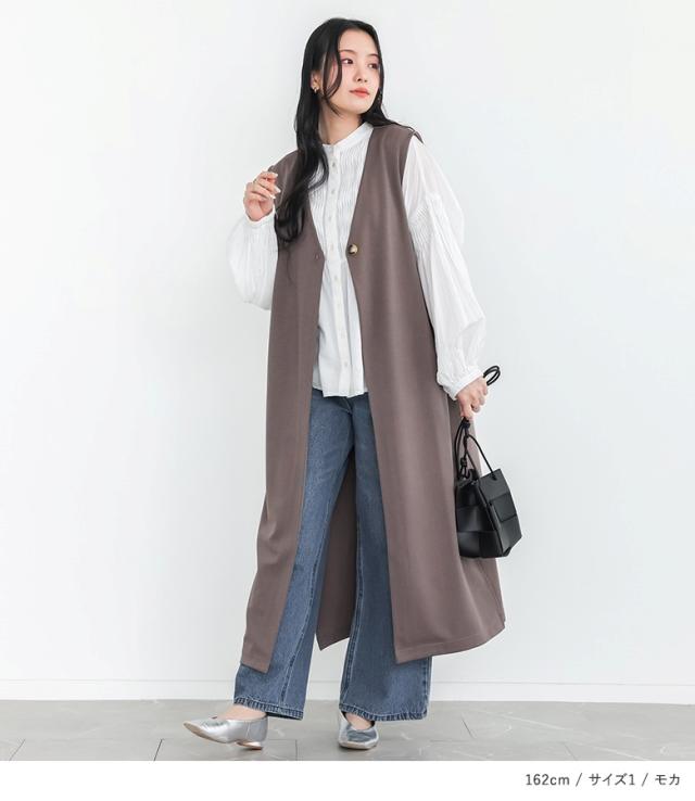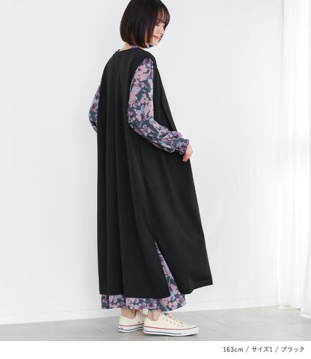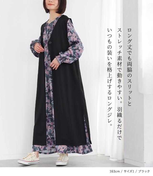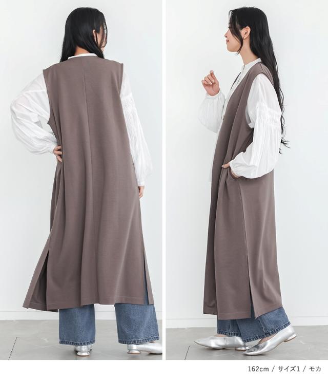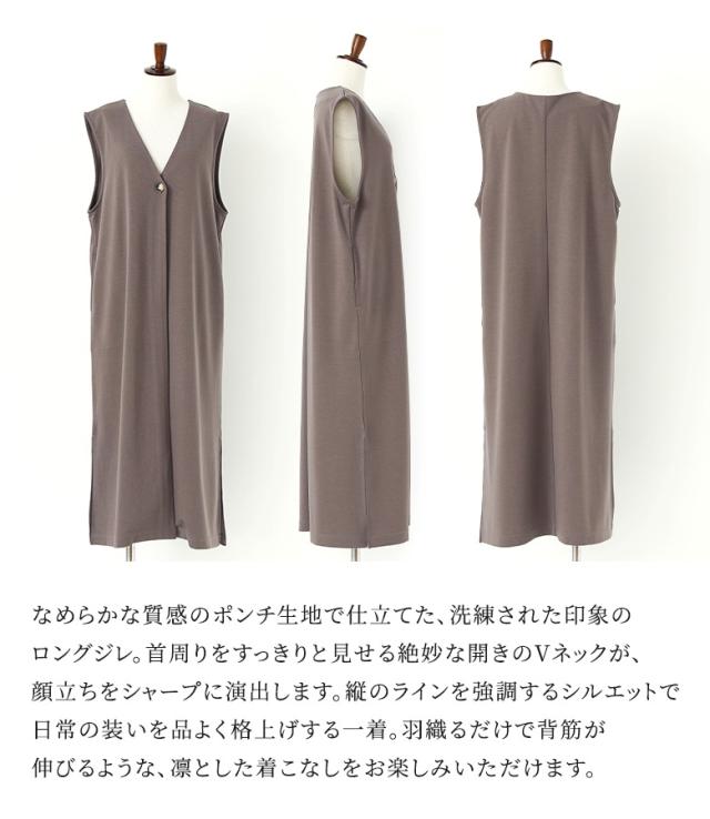 <春新作>『ロングポンチジレ』【メール便不可】【30】[ジレ ベスト ロング丈 レディース ライトアウター ロングジレ 羽織 ポンチ生地 スリット Vネック ストレッチ レイヤード 重ね着 体型カバー 春 秋 冬]