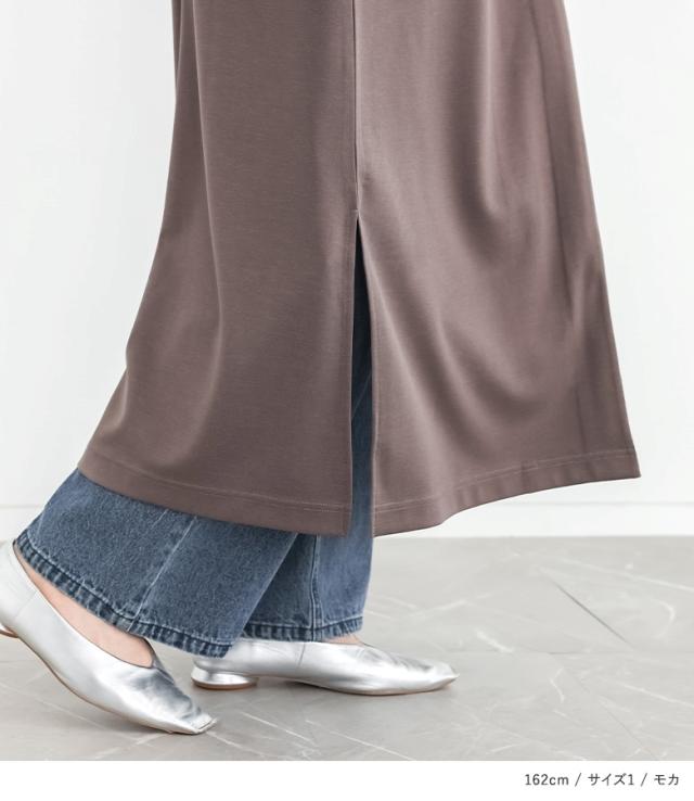 | staff:ST/154cm B94.5 W79 H103.5 【普段着用】 Tops: S/M Bottoms:S | 【1】 着丈:くるぶし上7cm位 腕周り:ゆったり バスト:ややゆったり 全体:ややゆったり ちょうどいい丈感で着用できました。アームホールは余裕があるので、厚めのトップスと合わせることもできます。 【2】 着丈:くるぶし上5cm位 腕周り:ゆったり バスト:ゆったり 全体:ゆったり 全体的にサイズ1よりもゆったりめで着用できました。 私の場合は、1を選びます。 |