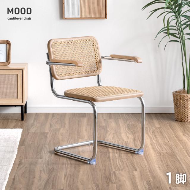 【26日9:59迄!P5%還元】 カンティレバーチェア 1脚 天然ラタン(肘付き) ダイニングチェア カンティレバー シルバー脚 ダイニング ダイニングチェアー リビングチェア チェア チェアー 椅子 イス いす カンティレバーチェア スチール アイアン おしゃれ