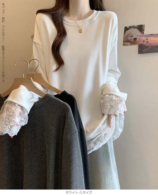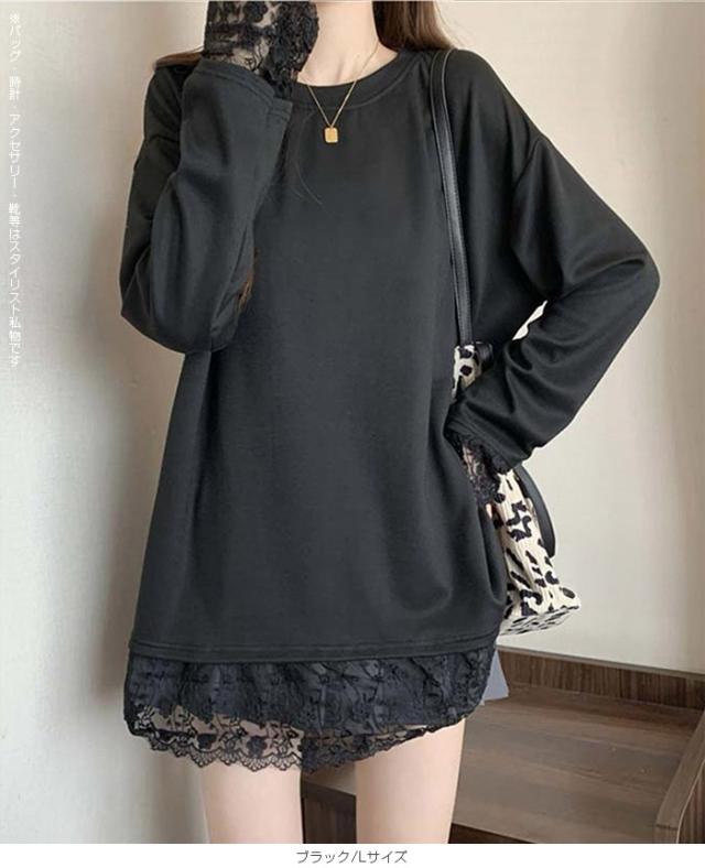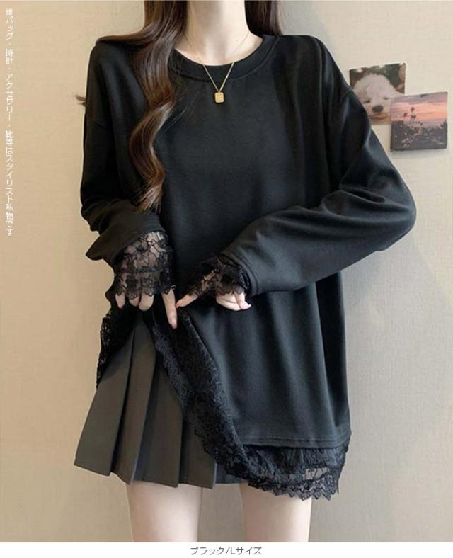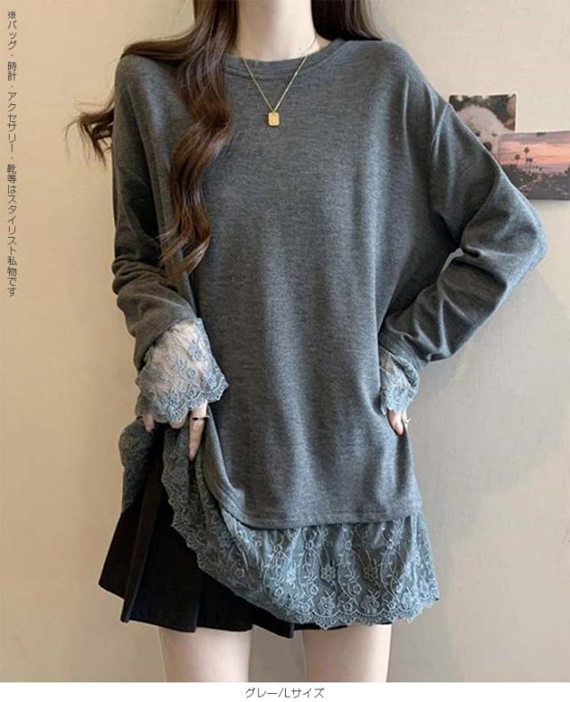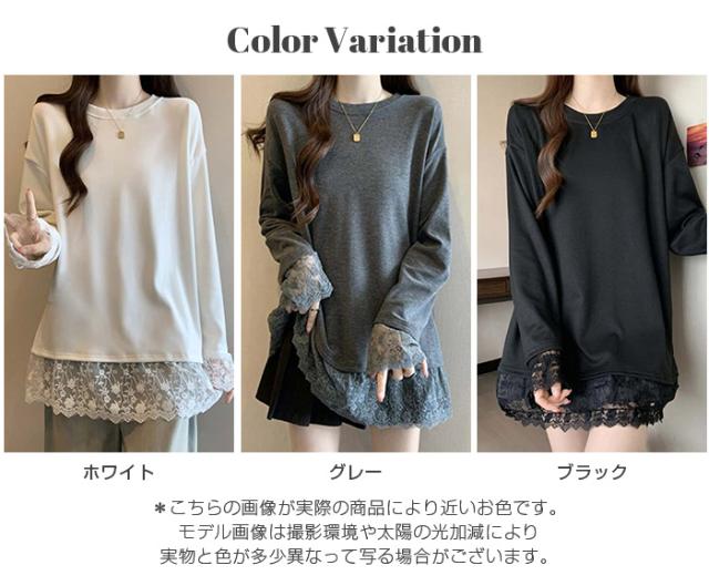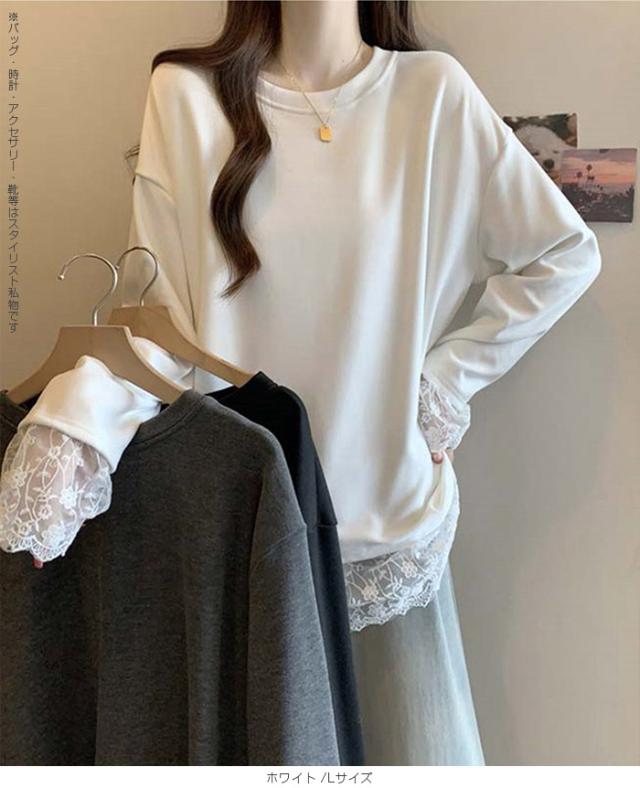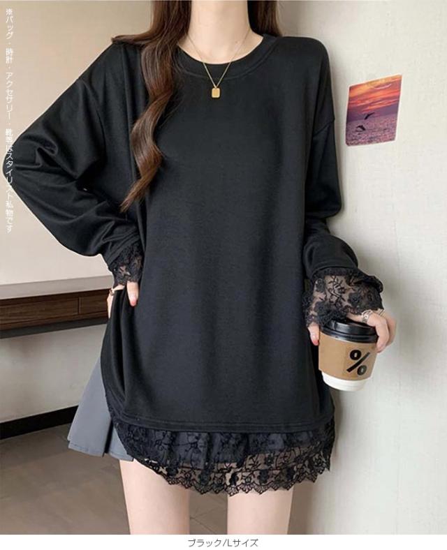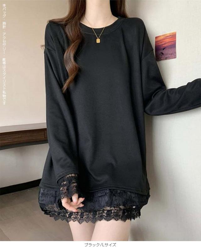 33%OFFクーポン!レディース 春 ゆるシルエット 長袖 Tシャツ ぽっちゃり 華奢見え トップス レース 切替 ロンT 体型カバー 2L 3L 4L 大きいサイズ 大人可愛い レース切替 ゆるロン 異素材ミックス チュニック こなれ感【 レース切替ロンT 】