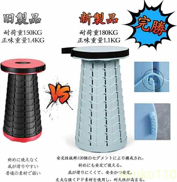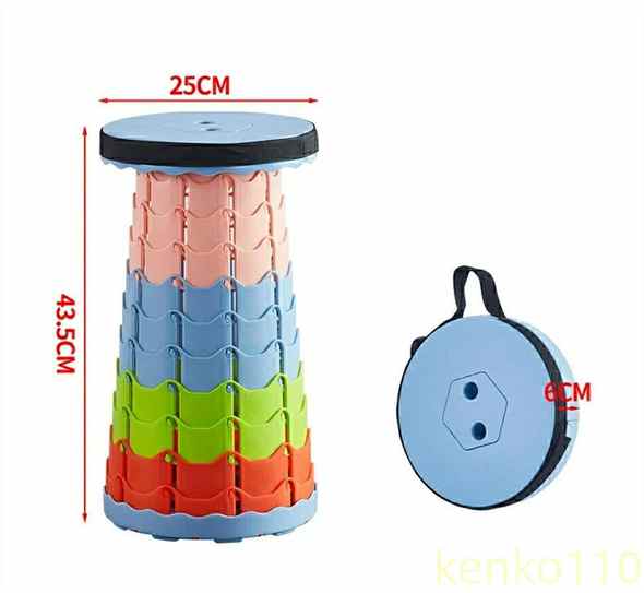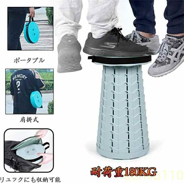 【使い方簡単、持ち運び便利】使い方簡単:少しひねりを入れながら両端を引くだけでスツールが完成。収納は逆方向に少しひねりを入れながら両端を押すだけで収納可能。また、ストラップ付きで、手に持ってでも、肩に掛けても、便利です。リュックにも収納可能です。