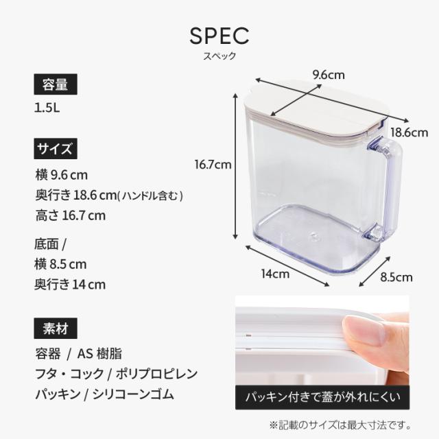 材質 : 本体=AS フタ・栓=ポリプロピレン フタパッキン=シリコンゴム