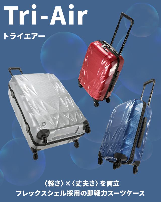 | ブランド |ProtecA / プロテカ シリーズ |Tri-Air / トライエアー 品番 |01541 形状 |スーツケース 機内持ち込みサイズ |キャリーケース |PROTECA最軽量モデル 外寸 |W370×H550×D230[mm] 重量 |約 1.8kg 容量 |約 35L 滞在目安 |2〜3泊程度 素材 |ポリプロピレン 生産国 |日本 / MADE IN JAPAN 仕様 |国内100席以上・機内持込み対応 |TSAダイヤルファスナーロック |Flexshell™(フレックスシェル) |4輪キャスター |サイレントキャスター® |ベアロンホイール® ATTENTION ●サイズはメーカー公称値(許容される最小値と最大値の中心値)です。 ●このスーツケースのTSAロックはダイヤルコンビネーションロックです。鍵穴はTSA職員が緊急の際に解錠して検査を行うためのものであり、差し込み式のキーは付属しておりません。 ●滞在日数目安は衣服の量や渡航先により異なります。一般的な目安としてご参照ください。 |