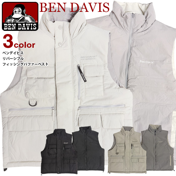 BEN DAVIS ベスト ベンデイビス リバーシブル スタンドカラー 中綿 フィッシングベスト メンズ 2way パファーベスト BEN-2254