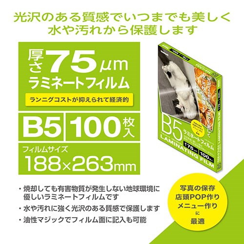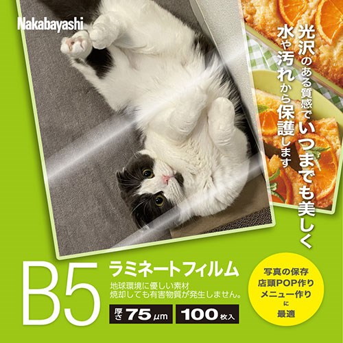 ナカバヤシ ラミネートフィルム厚さ75μmB5サイズ100枚入り ランニングコストが抑えられる LPR-B5E2-75(代引不可)【送料無料】