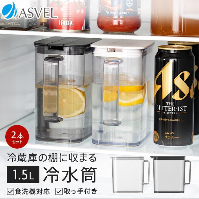 冷水筒 耐熱 ピッチャー 冷蔵庫 棚 収納 1.5リットル 1.5L 1.5L 洗いやすい プラスチック おしゃれ かわいい シンプル 麦茶ポット お茶ポット 水差し 食洗機 食洗機対応 ウォーターピッチャー コンパクト 広口 水出し 【 アスベル 棚に収まる冷水筒 SP151 2本セット 】