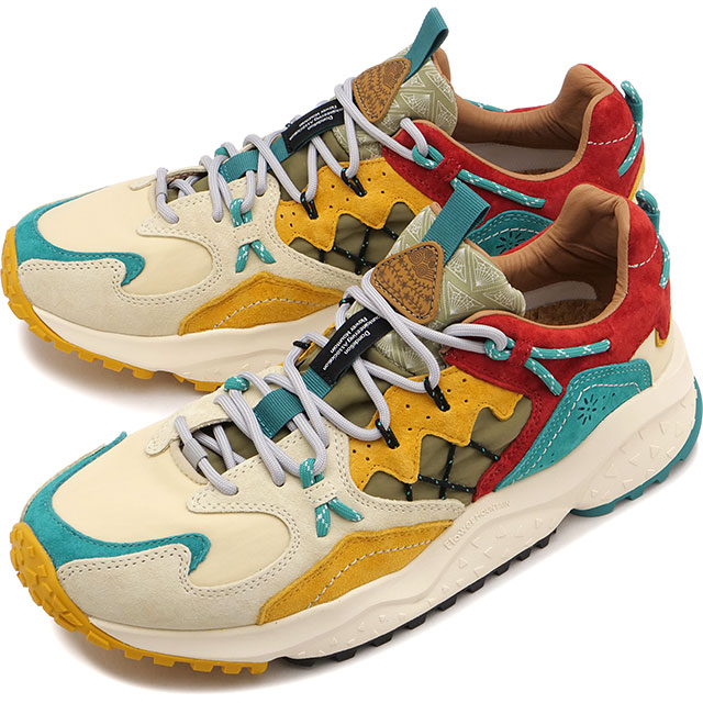 フラワーマウンテン 靴 シューズ フットウェア スニーカー shoes footwear sneaker レースアップ 本革 ナイロン カジュアル ナチュラル レトロ ハイキング イエロー レッド グリーン マルチカラー メンズ レディース