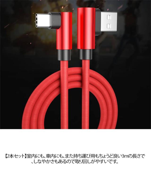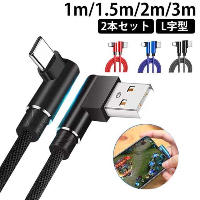 2本セット 2m Cタイプ L字型 iPhone17 iPhone Android ケーブル Type-C 充電ケーブル 充電器 USB アイフォン ケーブル 転送 断線防止 充電ケーブル type-c L字 充電ケーブル 3m ナイロン編み ゲーム用
