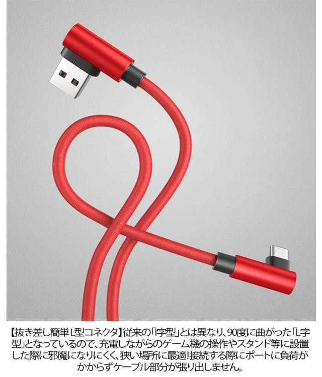 | 【1m/1.5m/2m/3m】 【2本セット】 【L字型】 【2本セット】 室内にも、車内にも、また持ち運び用もちょうど良い3mの長さで、しなやかさもあるので取り回しがやすいです。 【抜き差し簡単 L型コネクタ】 従来の「I字型」とは異なり、90度に曲がった「L字型」となっているので、充電しながらのゲーム機の操作やスタンド等に設置した際に邪魔になりにくく、狭い場所に最適!接続する際にポートに負荷がかからずケーブル部分が張り出しません。 【高耐久ナイロン線材】 高品質のナイロン編みによるケーブルは手触りがよく、耐久性もより高いです。日常のどのような場面でも対応し、接続が可能で、使用に便利です。柔らかくて、手触りもいいし、環境にも優しいケーブルです。 | |