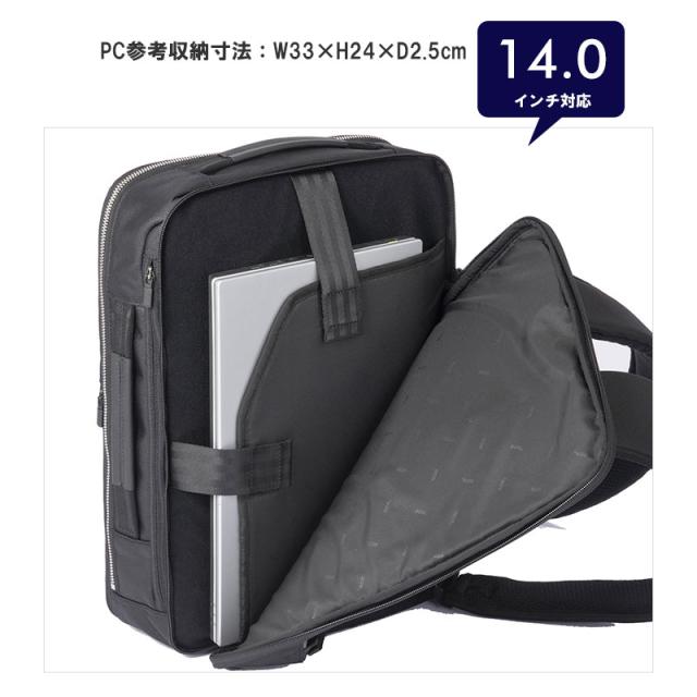 仕様 ● 14.0インチノートPC収納可能(参考収納寸法 W33×H24×D2.5cm)