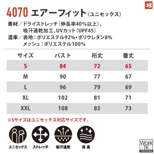 年通 4070 バートル ドライフィット 春夏 秋冬 工事現場 建設業 農作業 ガーデニング アウトドア おすすめ 制服 人気 豊富なカラー展開 S M L XL XXL