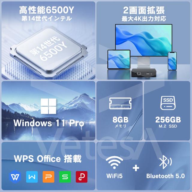 新品ミニデスクトップパソコン Intel Pentium Gold 6500Y 3.4GHz Windows11 Office搭載 メモリ8GB SSD256GB