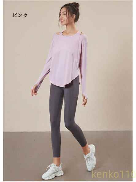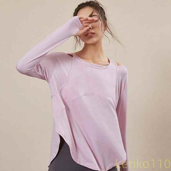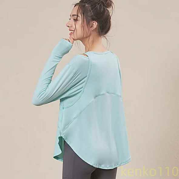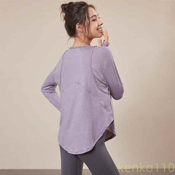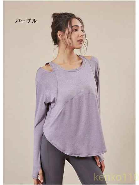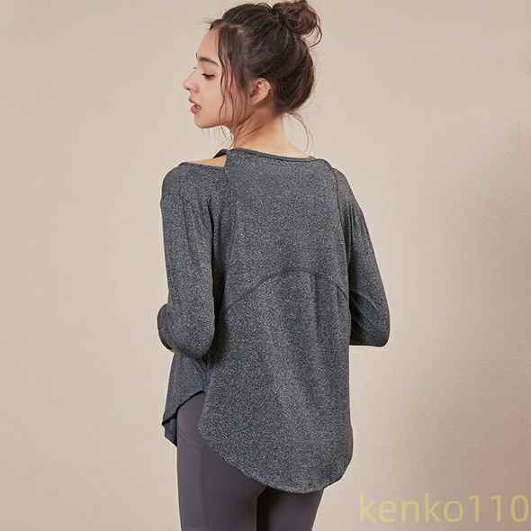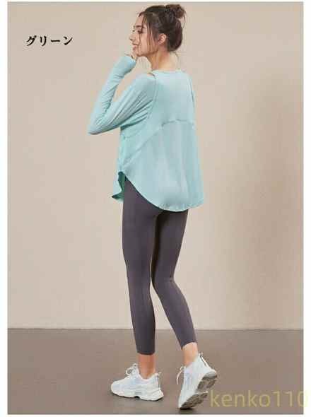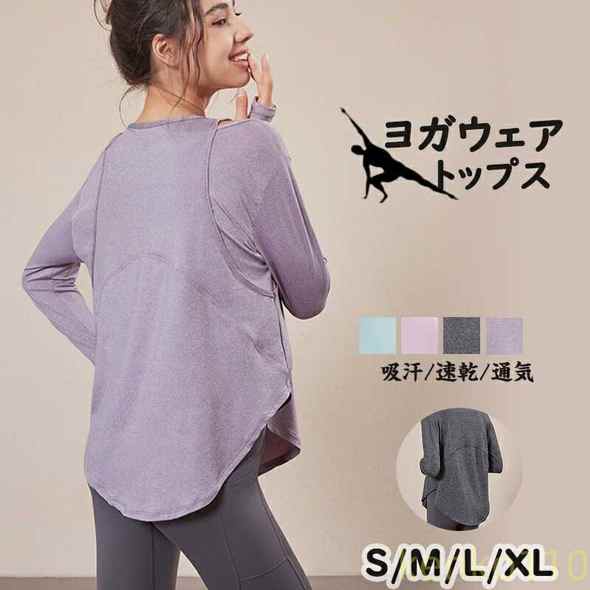 ヨガウェア レディース トップス 長袖 フィットネスウェア ロング シャツ 着痩せ 薄手 ルームウエア ランニングウェア ホットヨガ デコルテ 体型カバー 美シルエット 速乾 吸汗 スポーツウ?