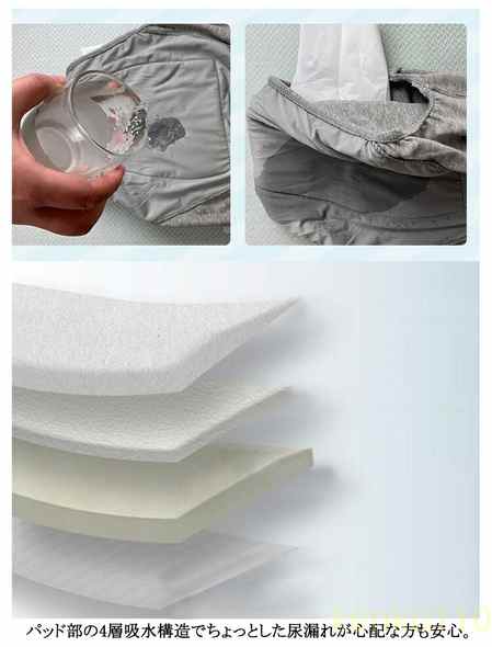 パッド部の4層吸水構造でちょっとした尿漏れが心配な方も安心