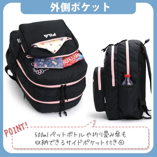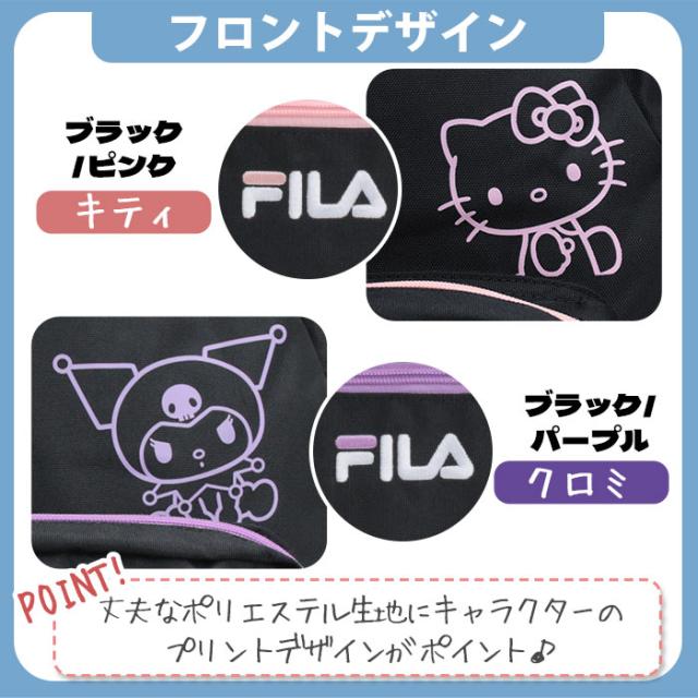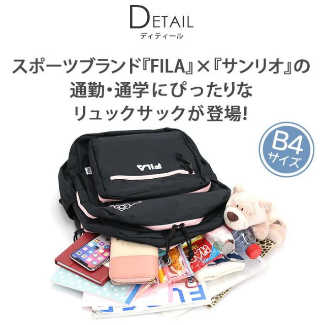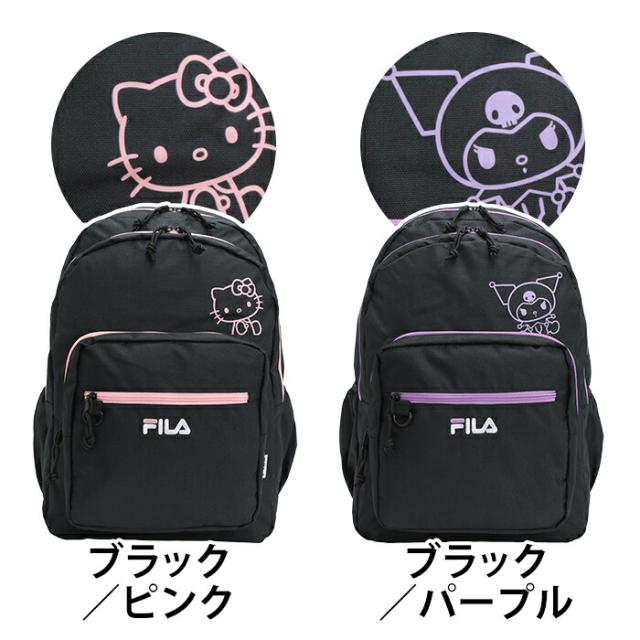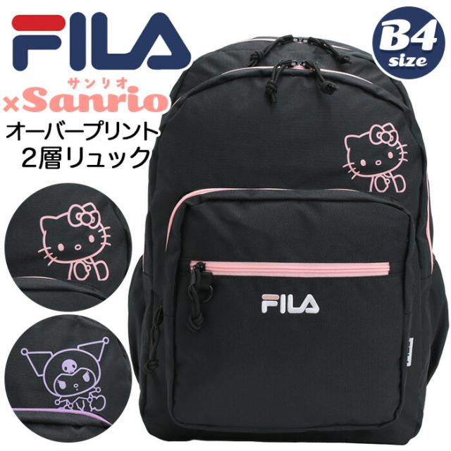 FILA フィラ リュックサック スタンダードタイプ サンリオ オーバープリント 2層リュック リュック バックパック キティ クロミ A4 B4 2層式 軽い 大きめ 丈夫 レディース お出かけ おしゃれ 人気 ブラック 黒 ロゴ 通勤 通学 旅行 スポーツ ブランド SFB-0031