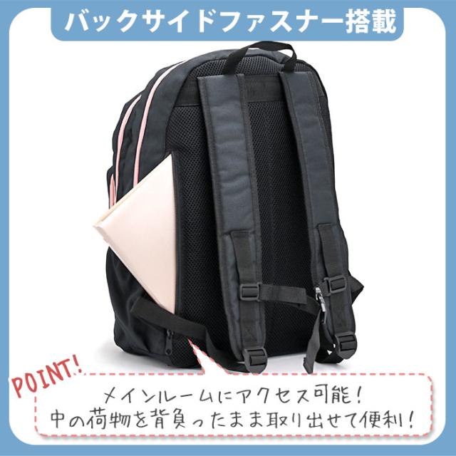 さらに、メインルームに直接アクセスできるバックサイドファスナー付き!バッグを下ろさず荷物の出し入れができて便利です。