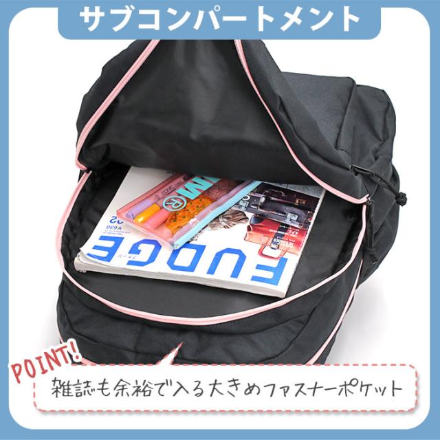 サブコンパートメントは雑誌や小物収納に便利◎外ポケットも充実しており、荷物の仕分けがしやすい仕様。