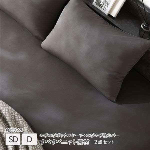 商品仕様: のびのびニット ボックスシーツ+枕カバー 2点セット 〔ボックスシーツ セミダブル〜ダブル 1枚 + 枕カバー 1枚〕 チャコールグレー 灰色 すべすべニット素材 消臭 洗濯可能 洗える
