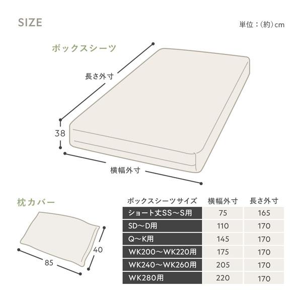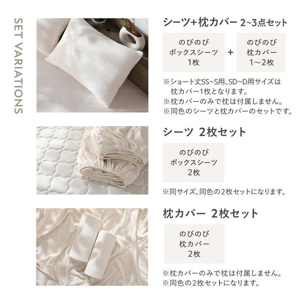 ショート丈セミシングル〜シングル、セミダブル〜ダブル:ボックスシーツ(1枚) + 枕カバー(1枚) 2点セット