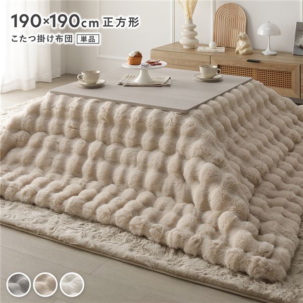 (キーワード: 高級 流行 デザイン おしゃれ オシャレ 耐久 清潔 機能 保温 ふかふか TCC590732 RDA0005613902 4180942 インテリア 寝具 こたつ こたつ用品 こたつ用掛け布団 収納 用布団 カバー 用掛け布団 洗える ウォッシャブル ベージュの正方形こたつ布団、静電気防止加工付き ラビットファー調で暖かく、快適なこたつ掛布団 大きさ約190×190cmで、贅沢なリラックスタイムを提供します)