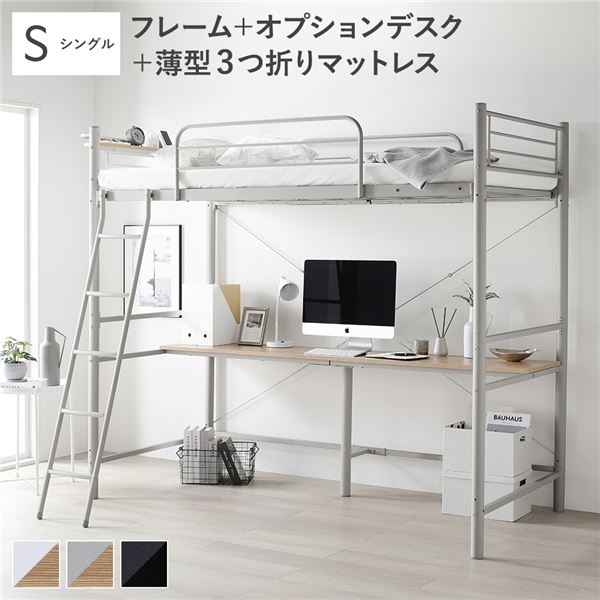 シングルベッド ナチュラル グレー 灰色 ロフトベッド 〔ベッドフレーム ライトグレー 灰色 + オプションデスク ライトグレー 灰色×ナチュラル + 薄型3つ折りポケットコイルマットレス〕 宮付き コンセント付き お客様組立品 シングルベッド ナチュラル グレー 灰色 ロフトベッド 〔ベッドフレーム ライトグレー 灰色 + オプションデスク ライトグレー 灰色×ナチュラル + 薄型3つ折りポケットコイルマットレス〕 宮付き コンセント付き お客様組立品