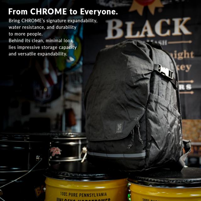 | CHROMEらしい拡張性、防水性、耐久性をたくさんの人へ。 シンプルな見た目からには想像付かない収納力と拡張性を備えています。さらに、内臓のデュアルプロテクトラップトップスリーブが大事なパソコンやデバイスを突然の雨や衝撃から守ります。 学生から社会人まで安心して使える""安心構造""が特徴的。この安心構造を携えて、大事な日常を謳歌しましょう。 ・大きなメインポケットには日常的な道具から着替えなども合わせて収納可能。トップのベルトを調節すれば、内容量も拡張できる。 ・プロテクションラップトップスリーブには、防水素材/肉厚な耐衝撃吸収材を使用。衝撃や水の侵入からラップトップを絶対に守ります。 ・ボトム部分にはシューズやランチボックスを収納できる独立したジップポケット。 ・ボトムウェビングやロゴ、ジッパー引き手にはリフレクティブ素材を使用し、夜間の視認性/安全性を確保。 CHROME INDUSTRIES / クローム・インダストリーズ WE BUILD DURABLE PRODUCTS FOR WHEREVER YOU’RE HEADED. 革新性と耐久性に揺るぎないこだわりを持ち、 私たちは常に限界に挑戦し続け、 長持ちする目的を持ったプロダクトを作る。1995年[コロラド州ボルダー]比類なき強靭さを持ちながら、自転車に乗っていない時でも使えるバッグを作る為に、ミシンと少量のコーデュラ、トラックタープを用いて、最初のバッグが制作された。現在、CHROMEはアーバンサイクルカルチャーの盛んな都市「ポートランド」を拠点とするメッセンジャーバッグのブランドとなった。通勤、トラベル、写真といったジャンルへも視野を広げ、すべての都市生活者のためにタフで機能的なプロダクトを展開している。 |