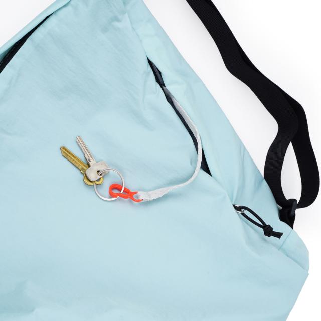 ドローストリング式ポケットの逆サイドにはファスナー式のサイドポケットがあり、中にはキークリップが付いています。
