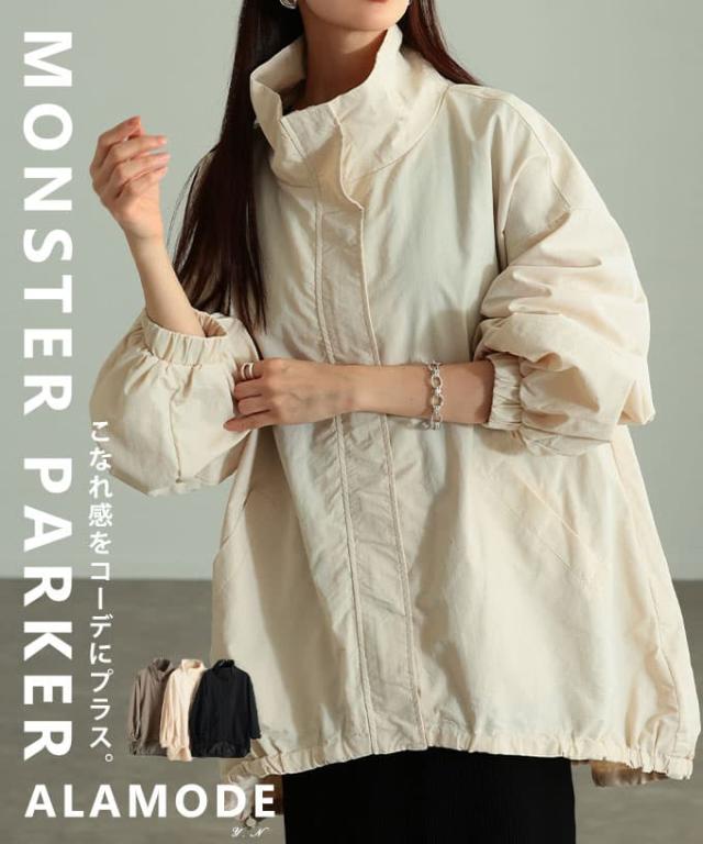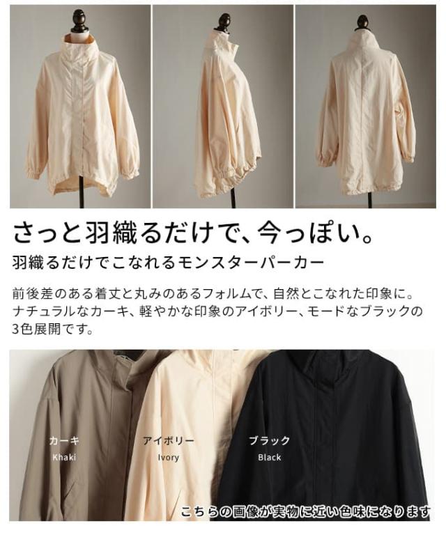 春新作 羽織るだけでこなれるモンスターパーカー レディース アウター 長袖 ジャケット ブラック カーキ アイボリー オーバーサイズ 体型カバー 春 秋 春服 秋服 30代 40代 50代 60代 アラモード alamode otona 大人 cawaii 可愛い 洋服 かわいい服 almam-8245