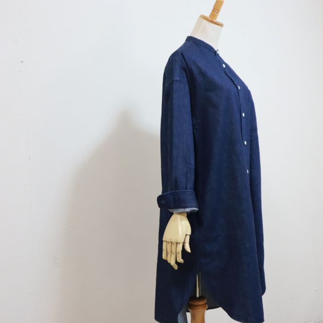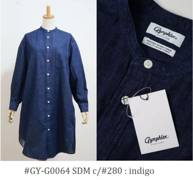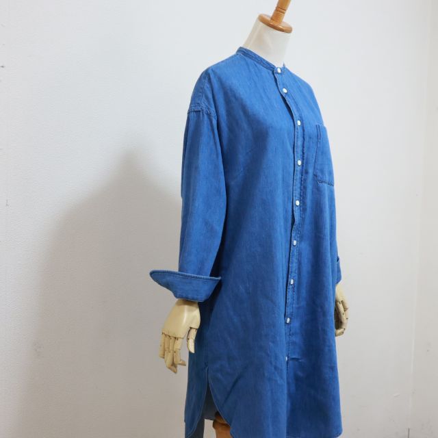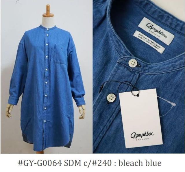 2026SS GYMPHLEX ジムフレッックス バンドカラー L/S 定番シャツワンピース 6oz ライトデニム #GY-G0064 SDM レディース