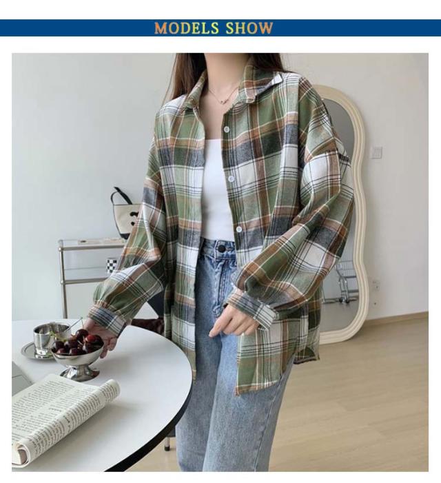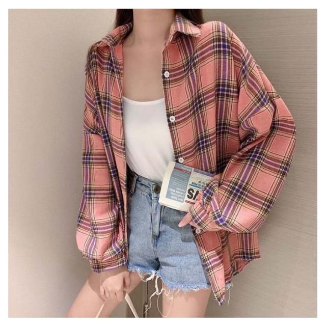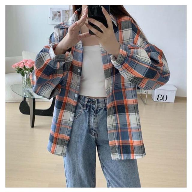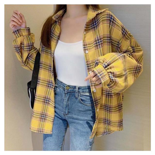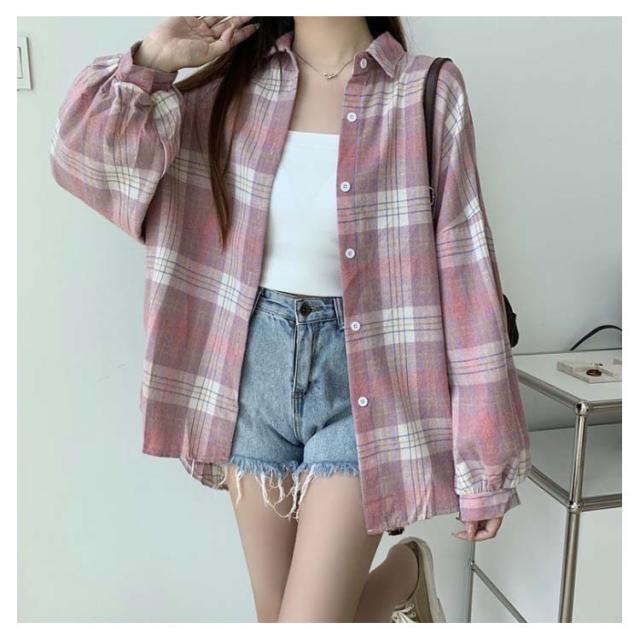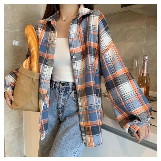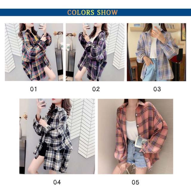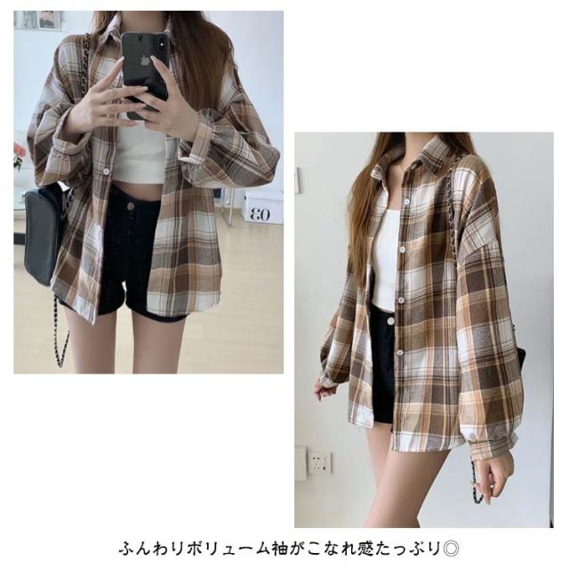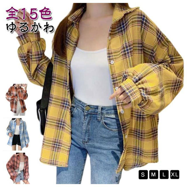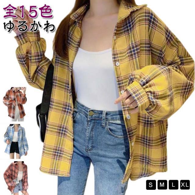 シャツ ゆるかわ チェック柄シャツ レディース 15カラー展開 ゆったり カジュアル 秋服 長袖 襟付き オーバーサイズ 羽織 トップス 大きいサイズ 体型カバー ボリューム袖 春 秋冬 韓国ファッション ライトアウター