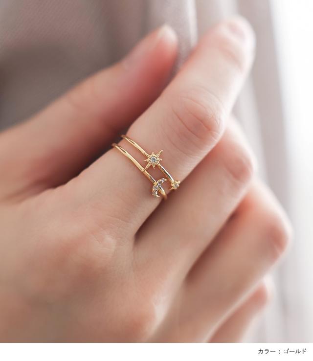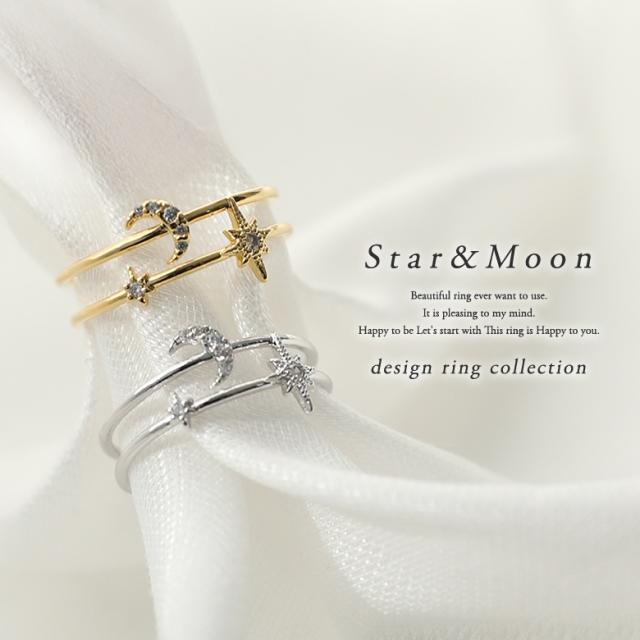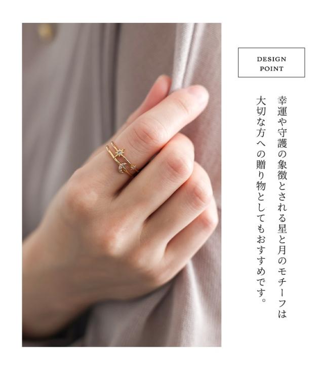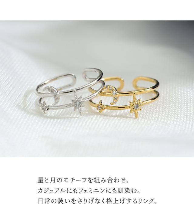 『スタームーンリング』※メール便可※【2】[リング レディース アクセサリー 指輪 ジュエリー ファッション小物 アクセ 星 スター 月 ムーン 春 夏 秋 冬 オールシーズン オシャレウォーカー]