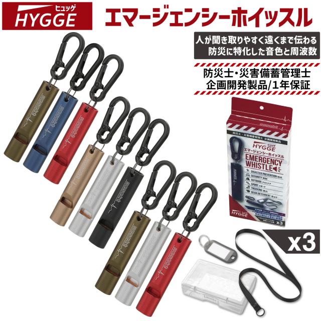 [ネセクト] ホイッスル 笛 エマージェンシーホイッスル 防災 防犯 アウトドア 軽く吹ける 大音量 緊急用 ストラップ カラビナ ネームプレート付属 小型軽量アルミA6063 食品衛生法適合品 [日本国内企画品 1年保証] マルチカラー3本セット