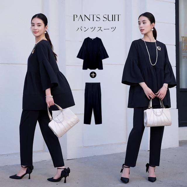 このパンツスーツは、入学式、卒業式、謝恩会、結婚式などの重要なイベントやビジネスシーン、面接に最適なデザインが魅力です。特に母の意識したシルエットは、体型を自然にカバーし、自信を持って着用できるスタイルを可能にします。シックな黒のカラーリングは、フォーマルな場面でも常に上品な印象を与え、洗練された雰囲気を演出します。