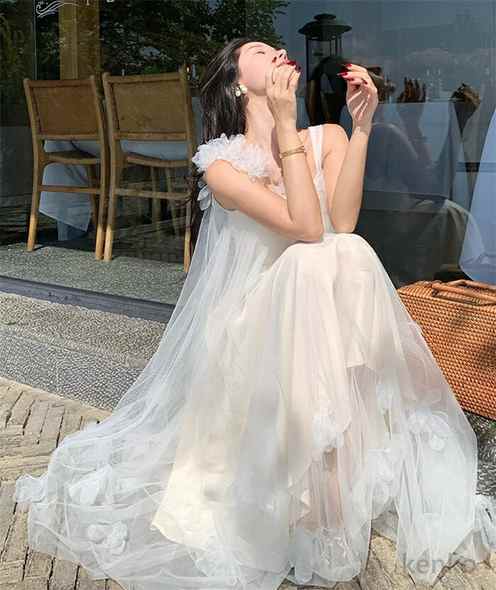 送料無料 白ワンピース レディース ノースリーブ ロング リゾートワンピース ロングワンピース マキシワンピ サマーワンピース 花嫁 二次会 結婚式 披露宴 ドレス ビーチ
